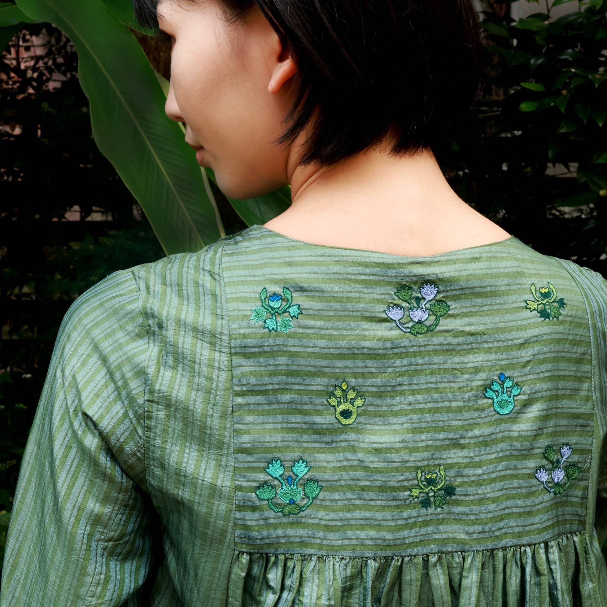 這些衣物然是使用相同的桑蠶絲、卡地棉,花費同等的心血打造而成;我們就著感恩的心,珍惜天賜的珍貴材料與可用的資源、感恩工匠們悉心織出的布料,讓這些無法一見鍾情的織品衣物,在您欣賞與呵護穿著下,展現美好。