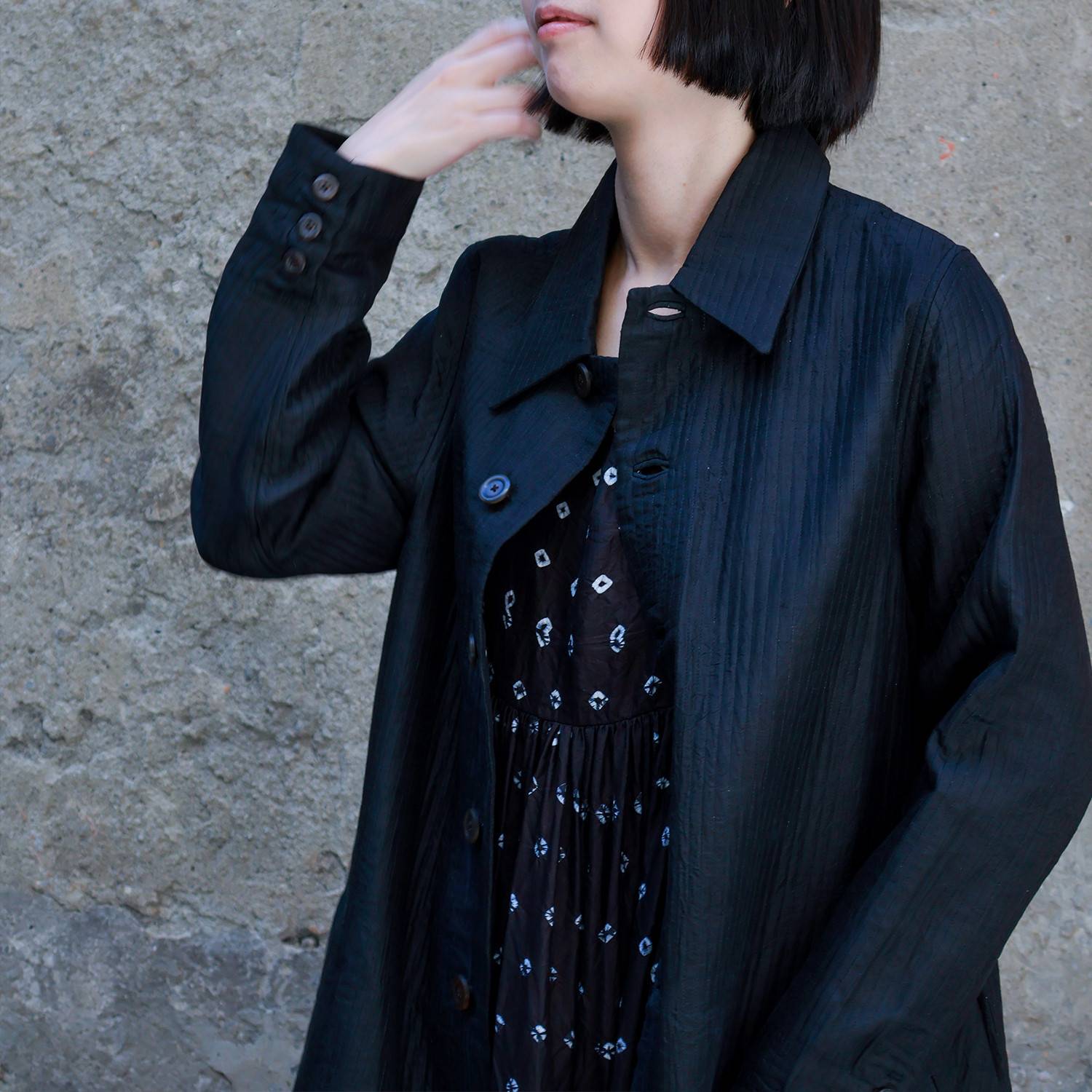 這些衣物然是使用相同的桑蠶絲、卡地棉,花費同等的心血打造而成;我們就著感恩的心,珍惜天賜的珍貴材料與可用的資源、感恩工匠們悉心織出的布料,讓這些無法一見鍾情的織品衣物,在您欣賞與呵護穿著下,展現美好。