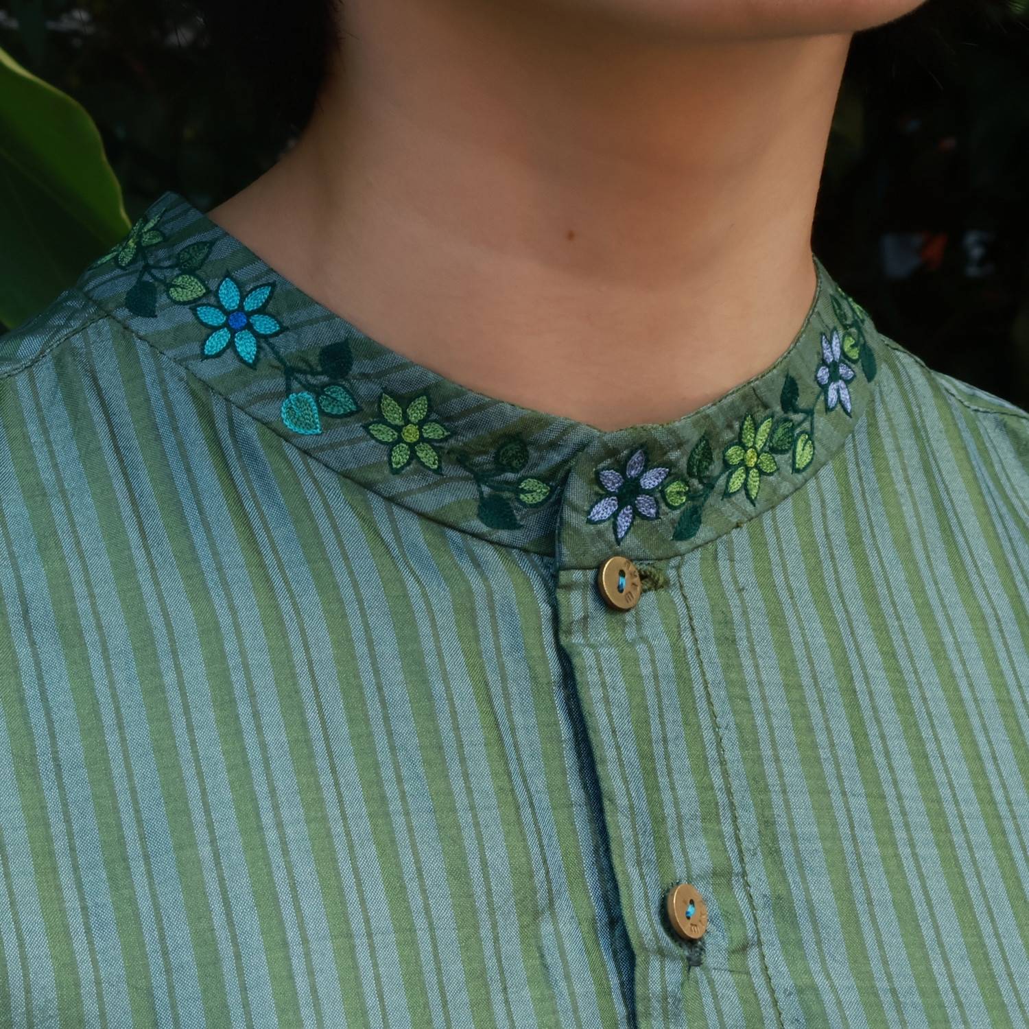 這些衣物然是使用相同的桑蠶絲、卡地棉,花費同等的心血打造而成;我們就著感恩的心,珍惜天賜的珍貴材料與可用的資源、感恩工匠們悉心織出的布料,讓這些無法一見鍾情的織品衣物,在您欣賞與呵護穿著下,展現美好。