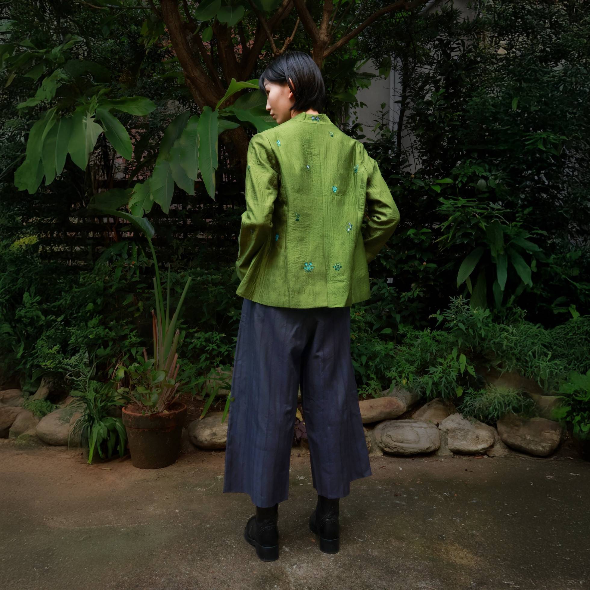 這些衣物然是使用相同的桑蠶絲、卡地棉,花費同等的心血打造而成;我們就著感恩的心,珍惜天賜的珍貴材料與可用的資源、感恩工匠們悉心織出的布料,讓這些無法一見鍾情的織品衣物,在您欣賞與呵護穿著下,展現美好。