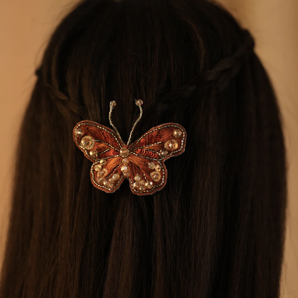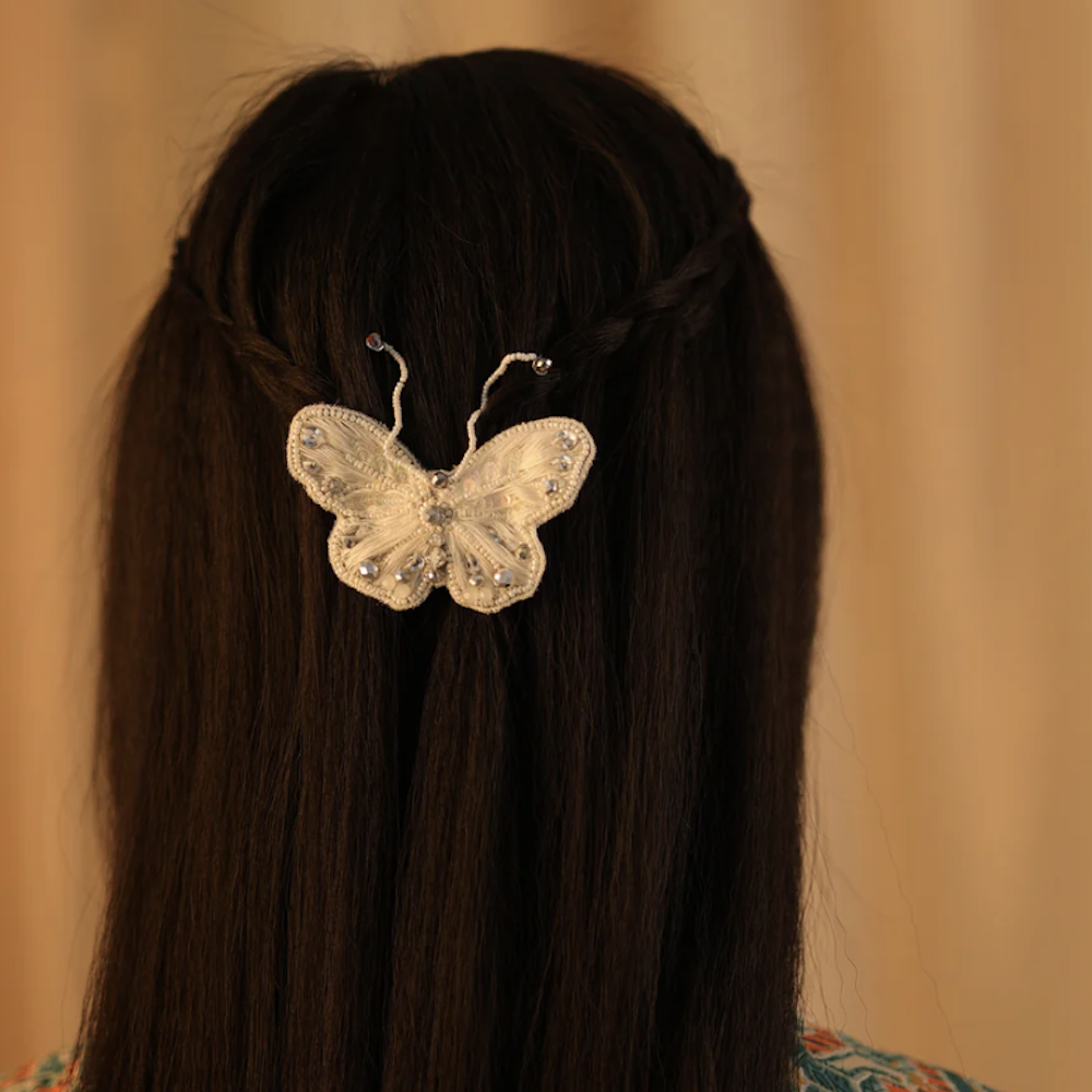在 NamJosh,每一款髮飾皆由技藝精湛的工匠以世代相傳的刺繡工法,親手縫製並串珠完成。