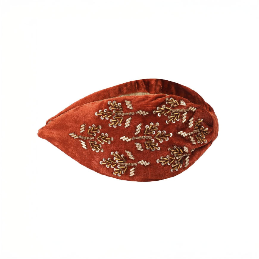 【Namjosh】手工珠繡髮箍_橘色絨布金珠
