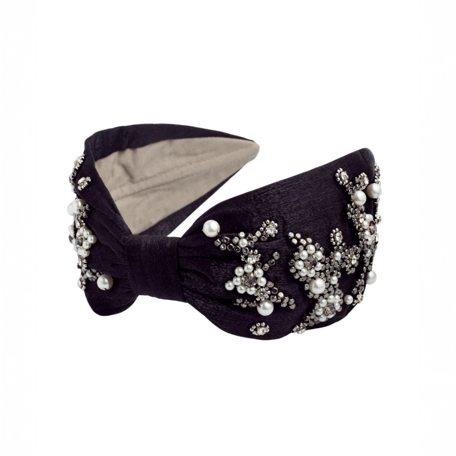 【Namjosh】手工珠繡髮箍_黑底銀花