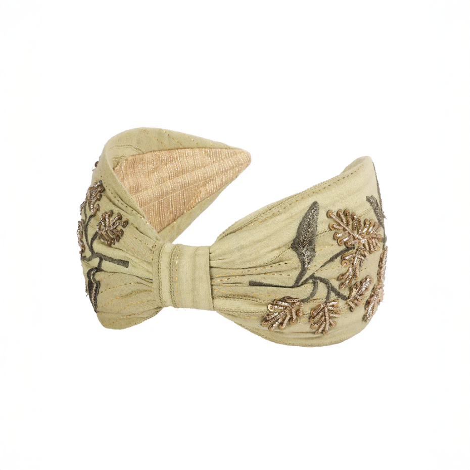 【Namjosh】手工珠繡髮箍_橄欖綠金葉