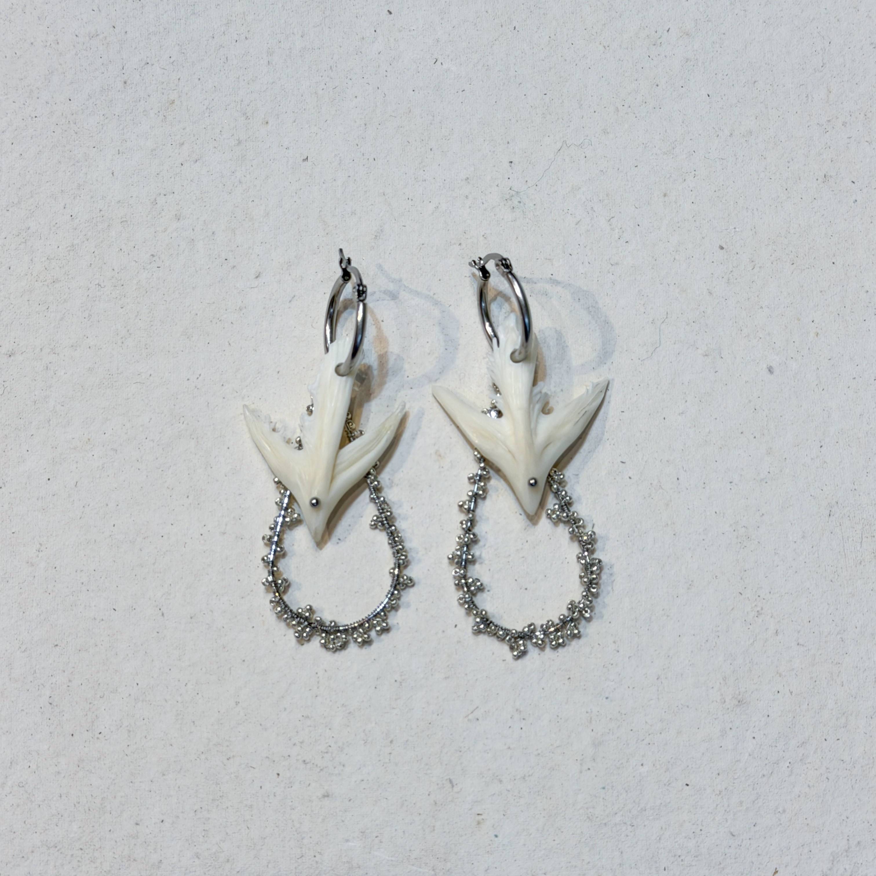 水滴墜飾、魚骨皆可拆動,一副耳環四種戴法。