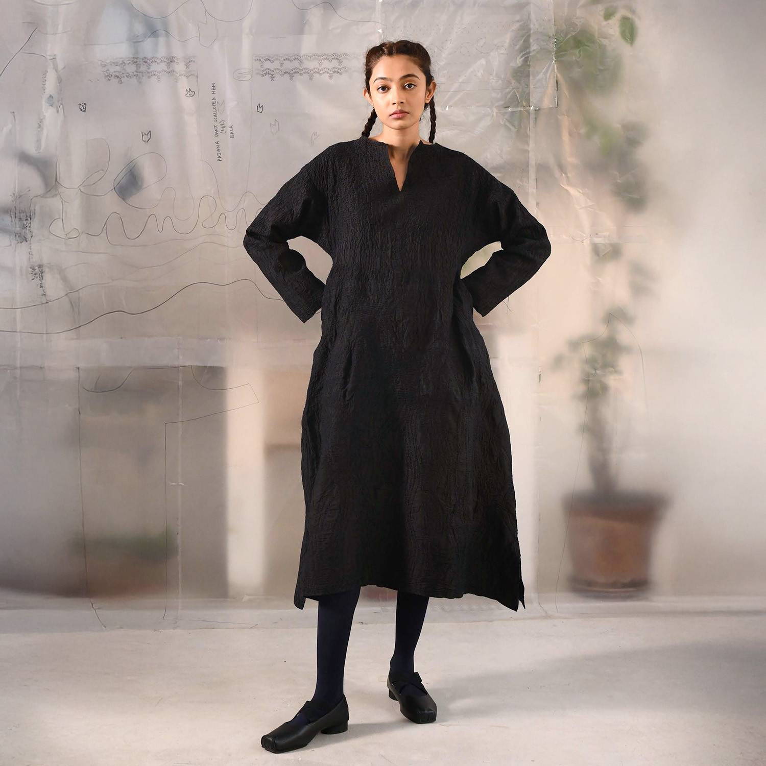 *是手工織布,內貼邊以及領口包邊皆為手縫,表面會有些微的不平整,請可接受才購買。